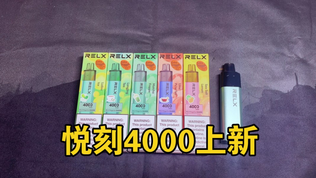 作为国内电子雾化行业的头部品牌,RELX悦刻的产品向来以稳定的品控、成熟的工艺和广泛的渠道著称。其“4000口”一次性产品延续了品牌一贯的简约、时尚设计语言。从公开的产品图来看,其外观多为流畅的条形设计,采用半透明或实色外壳,质感出色,握持感符合人体工学。产品正面通常清晰印有“RELX”品牌标识和醒目的“4000”口数标注,设计风格偏向大众化与普适性,彰显其作为成熟工业制品的可靠感。